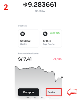 Paso 3- Escogemos la cantidad de worldcoin que vamos a enviar y